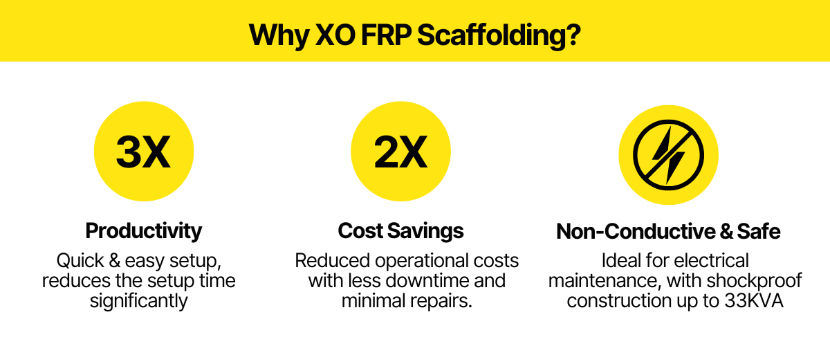 Enhanced Safety and Efficiency: The non-conductive nature of FRP scaffolding improved safety, especially around electrical work, and streamlined maintenance tasks.